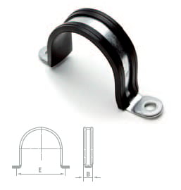 Abrazadera de acero cincado y perfil de elastómero para la fijación de tubos Macroflex® DN70 y DN95 que lo protege de las vibraciones.