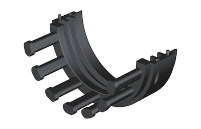 Abrazadera de fijación de cables en tubos de poliamida 12 autoextinguible, libre de halógenos, color negro RAL9005 disponible en varias medidas. Se utiliza en el extremo del tubos para la fijar o embridar los cables.