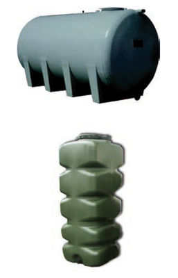 Depósitos de poliester reforzado con fibra de vidrio (PRFV) para reserva de agua, formado por: depósito, válvula de flotador mecánica para el control de llenado del depósito, filtro de impurezas, interruptor de nivel mínimo, válvula de bola con conector para el latiguillo de aspiración del grupo, válvula de drenaje instalada en la parte inferior del depósito para mantenimiento, tapa de cierre con respiradero y latiguillo de conexión a la bomba