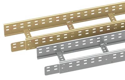 Bandeja de escalera diseñada para entornos industriales con cargas elevadas. Ala de alto 150 mm, Ancho 500 mm. La bandeja Megaband® esta formada por travesaños soldados y alternos de acero de 150 mm de altura y borde de seguridad para proteger y fortalecer la bandeja. Montaje mediante el sistema click de unión rápida entre tramos y accesorios. Fabricada en acero, en diversos tamaños y Sistemas de protección. Se suministra en tramos de 3 metros. Con sistema de protección GC