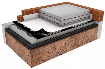· Extender DRENTEX PROTECT MAXI sobre la capa de hormigón de base, con los nódulos hacia abajo.