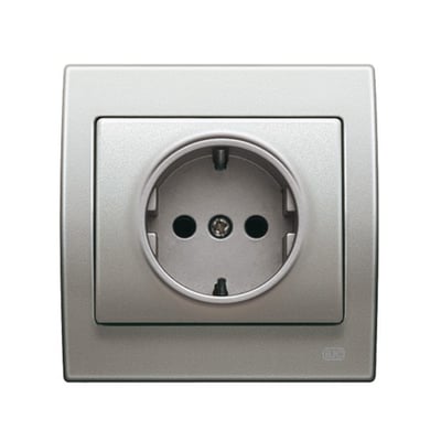 Base de enchufe con toma de tierra lateral realizada con base enchufe 2P + TT seguridad lateral aluminio mercurio de la serie BJC Iris.