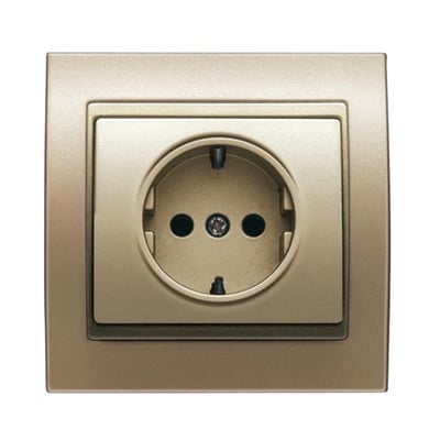 Base de enchufe con toma de tierra lateral realizada con base enchufe 2P + TT seguridad lateral bronce Niebla de la serie BJC Mega.