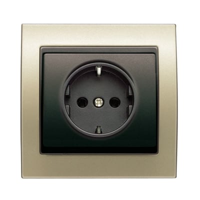 Base de enchufe con toma de tierra lateral realizada con base enchufe 2P + TT seguridad lateral dorado Malta Cosso de la serie BJC Mega.