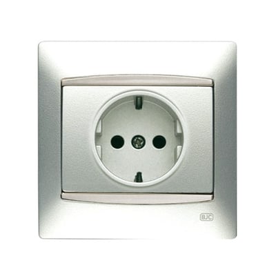 Base de enchufe con toma de tierra lateral realizada con base enchufe 2P + TT seguridad lateral plata Luna de la serie BJC Coral.