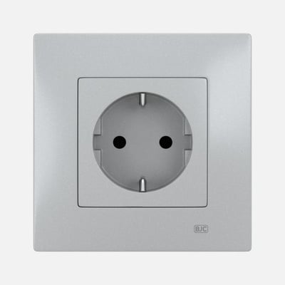 Base de enchufe con toma de tierra lateral realizada con base enchufe 2P + TT seguridad lateral plata Luna de la serie BJC Viva.
