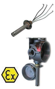 Detector térmico-termostático FENWALL ATEX de AE90/FEN-EX61 a AE90/FEN-EX107 de Aguilera Electrónica, para instalaciones especiales, tales como depósitos y tanques de líquidos. Existen varios modelos calibrados a diferentes temperaturas, (61º,71º, 88º, 98º,107º, 135º, 163º, 182º, 232º, 260º, 315º y 398º), tanto de circuito abierto como cerrado. Certificado ATEX ExII C, 2GD EExd II T6.