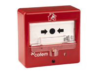 Pulsador manual de alarma de incendios rearmable, referencia PUCAY de Cofem. Incluye tapa