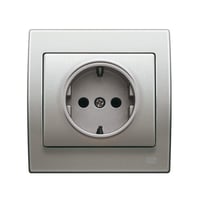 Base de enchufe con toma de tierra lateral realizada con base enchufe 2P + TT seguridad lateral aluminio mercurio de la serie BJC Iris.