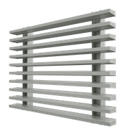 Lama de aluminio extrusionado de gran espesor, especial para grandes superfícies, admite perforaciones para ventilación o entrada de luz con cristal de metacrilato.