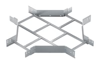 Accesorio metálico enchufable para la creación de cruces entre dos líneas de bandejas Megaband®. Ala de alto 100 mm, Ancho 100 mm. Montaje de conexión rápida mediante el sistema click. Fabricado en acero, disponible en diversas medidas y Sistemas de protección. Radio de curvatura 300 mm. Consultar disponibilidad de radio 600 mm. Con sistema de protección PG