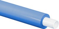 Tubería Uponor Aqua Pipe preaislado, de polietileno reticulado (PEX-a grado de reticulación >70%), de 16 mm de diámetro exterior y 1,8 mm de espesor de pared con un aislamiento de espuma de polietileno de célula cerrada y cumpliendo la norma UNE EN ISO 15875. Conductividad térmica del aislamiento =0,040 W/m*k. 16x1,8 25m Cód.1044877