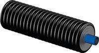 Canalización para refrigeración constituída por tubería individual de PE-HD (PE100), SDR11, PN 16/20 ºC, modelo Uponor Supra, de 110x10,0 mm, preaislada térmicamente con espuma de PE reticulado de 30 mm de espesor, conductividad térmica 0,0401 W/m·K según DIN 52612 y absorción de agua < 1% volumen y protección mecánica con tubo envolvente corrugado de PE-HD de 200 mm de diámetro y 2,2 mm de espesor, con un radio de curvatura mínimo admisible de 1,20 cm y un peso de 5,24 kg/m y apto para una presión de trabajo de 16 bar, con uniones mediante sistema Wipex o electrofusión, incluso p.p. de accesorios, (tapones, sets de aislamiento, registros, pasamuros, manguitos, etc.). Medida la longitud instalada (no incluye excavación ni relleno de la zanja). Cód.1095729