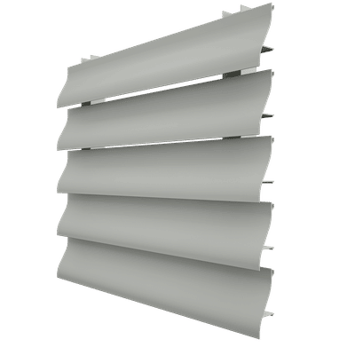 Esta lama tiene una forma curva más innovadora y que transmite una estética más atractiva al conjunto de la fachada donde es instalada. Los soportes son troquelados de forma equidistante (posibilitando varios pasos) para facilitar el anclaje de las lamas a nivel, sin necesidad de emplear tornillos de sujeción.