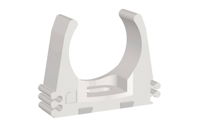 Clip de fijación de poliamida 6 en color gris (RAL 7035) para tubos rígidos y corrugados libres de halógenos y PVC. Accesorio para el montaje con fijación del tubo mediante presión. Disponible en diversos tamaños.