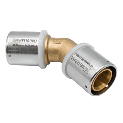 Codo 45º, referencia K206025 de la serie Klimapress de Heliroma. Medida: 25x25. Latón