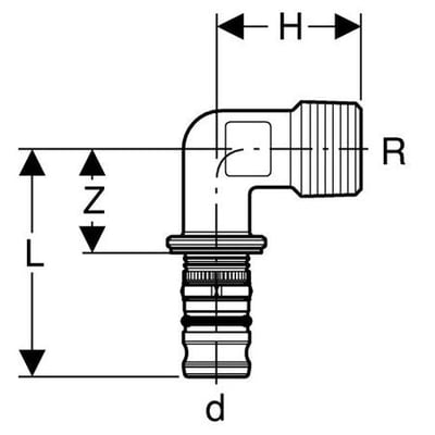 Codo de transición 90° Geberit serie Mepla con rosca macho: CW617N, d=16mm, R=1/2″