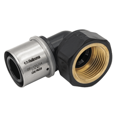 Codo hembra PPSU, referencia P-K208016LP de la serie Klimapress PPSU LP de Heliroma. Medida: 16x1/2.