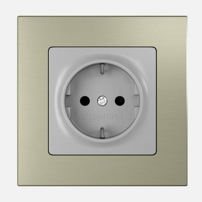 Conj. Toma schuko 2P + T emborne rápido sin garras, Amarillo oxido / Blanco polar, serie Miro Aluminio Puro