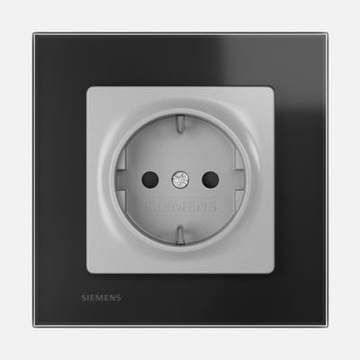 Conj. Toma schuko 2P + T emborne rápido sin garras, Negro / Aluminio Metalizado, serie Miro Cristal