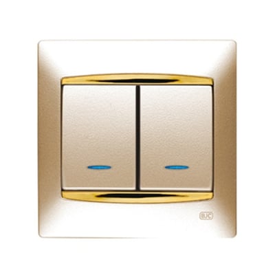 Punto conmutado doble con visor realizado con conmutador doble con visor dorado Perlado de la serie BJC Coral.