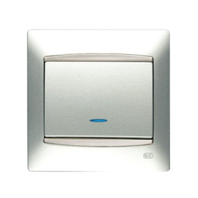 Punto conmutado simple con visor realizado con conmutador simple con visor plata Luna de la serie BJC Coral.