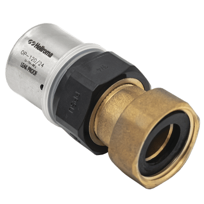 Enlace hembra con racor loco PPSU, referencia P-K234021LP-L de la serie Klimapress PPSU LP de Heliroma. Medida: 20x3/4.