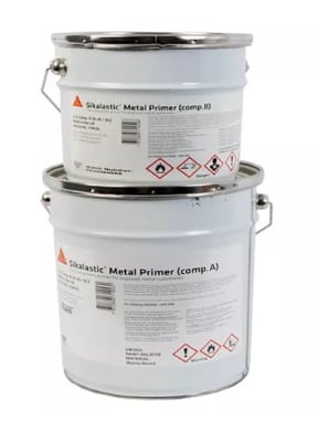 Sikalastic® Metal Primer es una imprimación de curado por amidas, bicomponente y dura. Consiste en una capa base gris (comp.A) y un activador (comp. B).