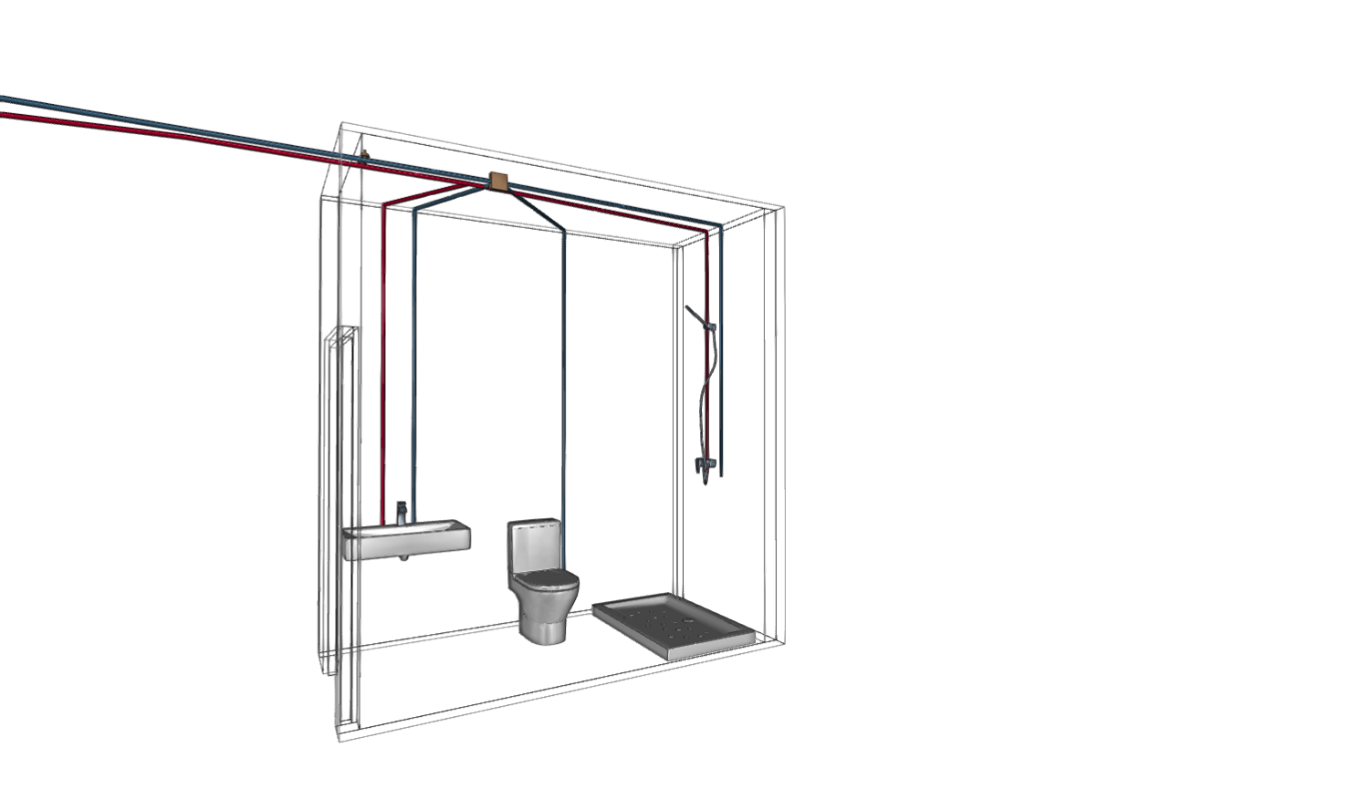 Inst. agua fría y cal. en aseo con lav+ind+ducha Uponor Aqua Pipe (deriv por colectores)