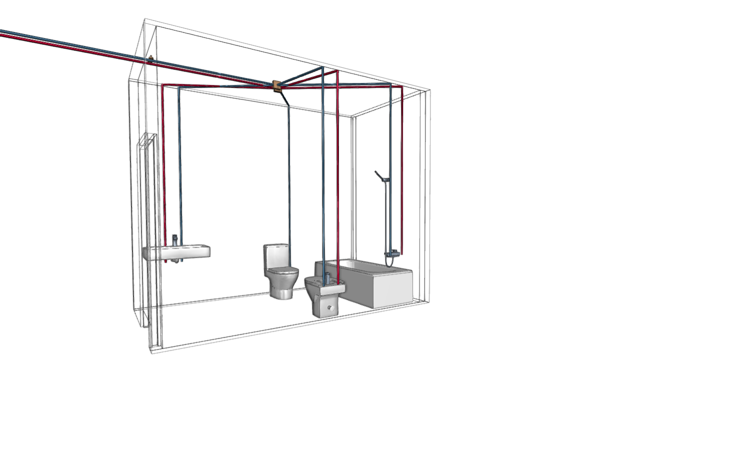 Inst. agua fría y cal. en baño con lav+ind+bid+bañera Uponor Aqua Pipe (deriv por colectores)