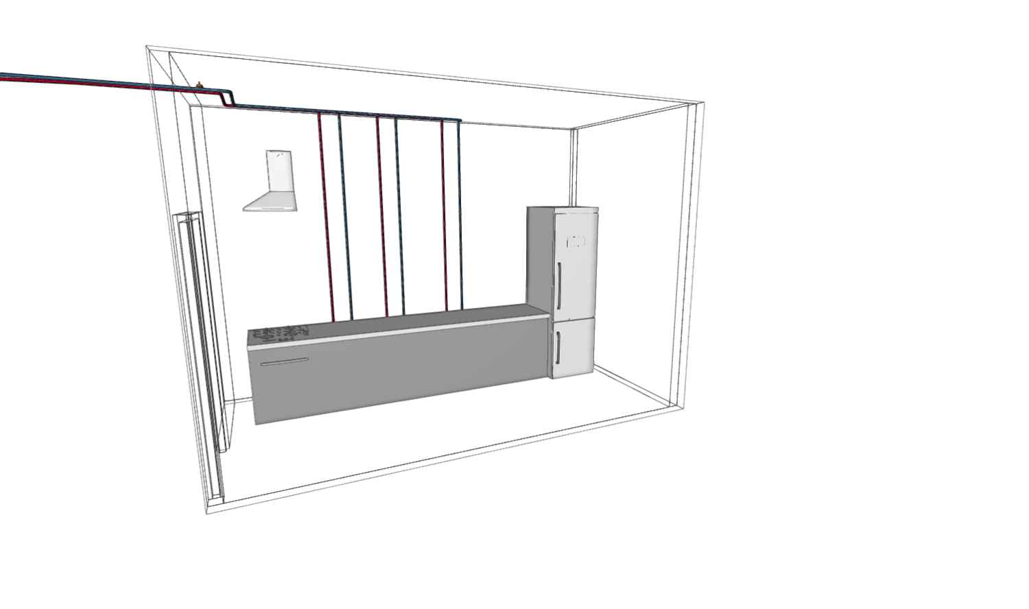 Inst. agua fría y cal. en cocina con freg+lavad+lavavajillas Uponor Aqua Pipe (deriv por colectores)