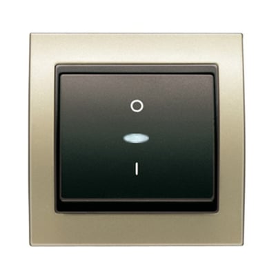 Punto de luz sencillo realizado con interruptor bipolar con visor dorado Malta Cosso de la serie BJC Mega.