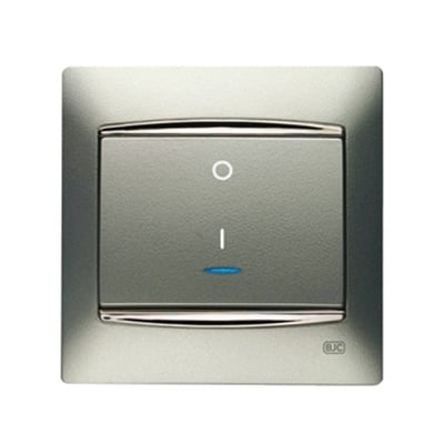 Interruptor bipolar BJC, con referencia 16508 de la familia Mecanismos Sol. El mismo interruptor sirve, cambiando solo el esquema de instalación, para tecla bipolar con luz o bipolar control