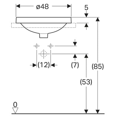 Lavabo empotrado Geberit VariForm, redondo, con orificio para el grifo: Toma de grifo=Centro, Rebosadero=Visible, Blanco