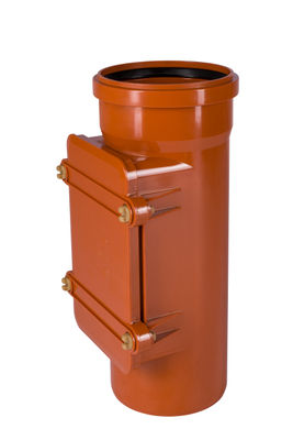 Accesorio para tubos de PVC-U de pared compacta y estructurada para redes de alcantarillado y evacuación de aguas residuales y pluviales.