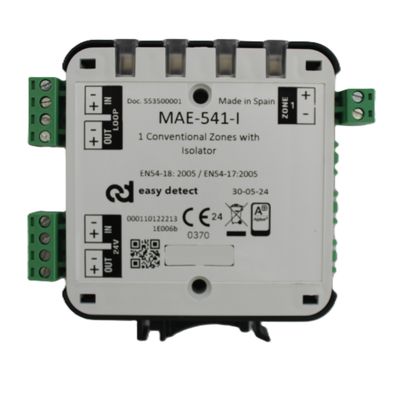 Módulo monitor analógico de zona convencional para controlar la conexión de hasta 24 detectores convencionales y/o 10 pulsadores convencionales por zona. Con protocolo de comunicación A.F Ultrafast. Discrimina pulsador y detector junto con avería de corte o por cortocircuito en la zona. Requiere alimentación auxiliar 24Vcc ocupando una dirección en el lazo por zona. Caja reducida con led indicador de estado con visualización 180º. Regletas extraíbles individuales. Instalación en carril DIN o plano con posibilidad de incorporar caja ONE-BOX o SIX-BOX. Permite realizar la instalación sin polaridad en los modelos no aislados. Color blanco y negro.