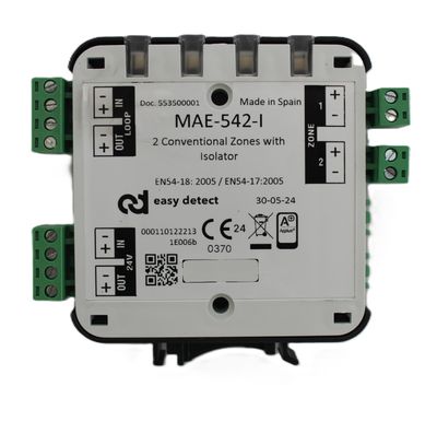 Módulo monitor analógico de zona convencional para controlar la conexión de hasta 24 detectores convencionales y/o 10 pulsadores convencionales por zona. Con protocolo de comunicación A.F Ultrafast. Discrimina pulsador y detector junto con avería de corte o por cortocircuito en la zona. Requiere alimentación auxiliar 24Vcc ocupando una dirección en el lazo por zona. Caja reducida con led indicador de estado con visualización 180º. Regletas extraíbles individuales. Instalación en carril DIN o plano con posibilidad de incorporar caja ONE-BOX o SIX-BOX. Permite realizar la instalación sin polaridad en los modelos no aislados. Color blanco y negro.