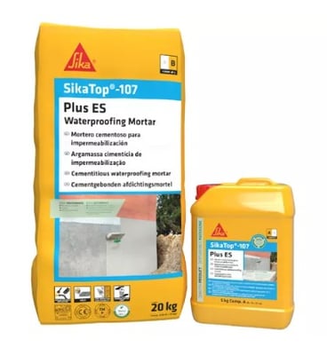 SikaTop®-107 Plus ES es un mortero de impermeabilización de dos componentes a base de cemento portland, áridos seleccionados, material reciclado y aditivos.