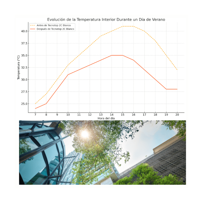 Tecnotop 2C Blanco no es solo un revestimiento, es una herramienta inteligente de control térmico. Con un SRI de 105, esta solución combina tecnología, eficiencia y sencillez en un solo gesto técnico. En la arquitectura del presente —y sobre todo del futuro— enfriar sin consumir será uno de los mayores retos. Y este tipo de sistemas pasivos estarán en el centro de la respuesta.