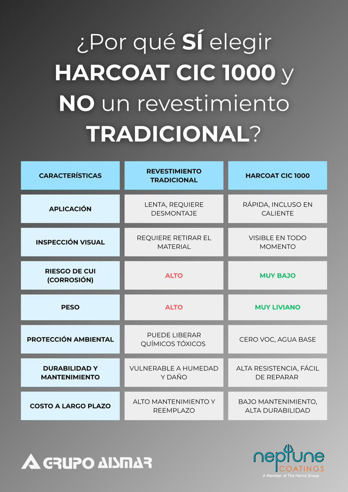 En Grupo Aismar siguen apostando por soluciones técnicas que aportan valor real a las industrias que requieren protección en condiciones extremas. Por eso, incorporan a su catálogo el nuevo HARCOAT CIC 1000, un recubrimiento innovador que redefine la protección contra la corrosión bajo aislamiento (CUI).