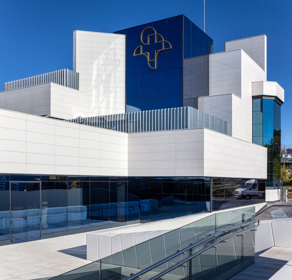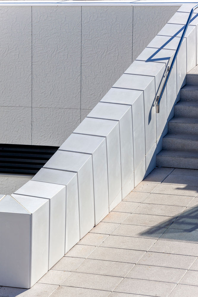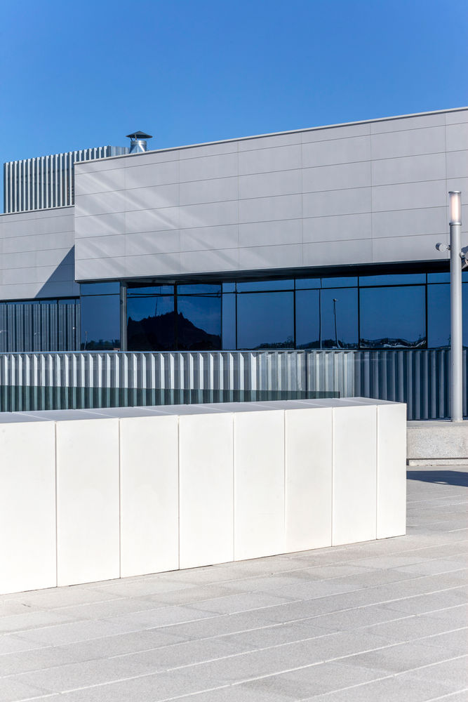 sistema de fachada ventilada Stoneo de ULMA . Así, se consiguió una solución coherente y equilibrada, además de duradera.