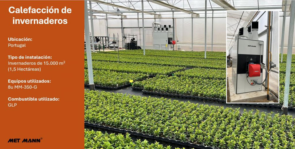 MET MANN suministra generadores de aire caliente MM-350-G a un invernadero de 1,5 hectáreas en Portugal