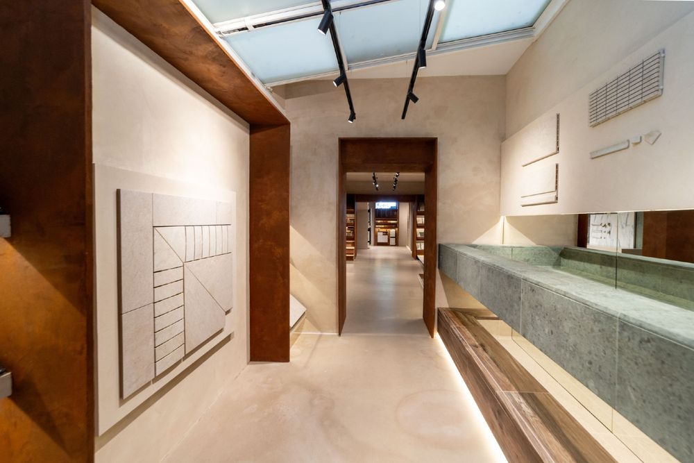 entorno expositivo concebido para resaltar las cualidades técnicas y estéticas de los productos cerámicos de Gresmanc Group , que son el reflejo de una empresa con profundos arraigos a sus raíces y a su tierra, que mantiene un firme compromiso con el respeto al medio ambiente, integrando procesos de fabricación responsables y soluciones cerámicas de larga durabilidad.