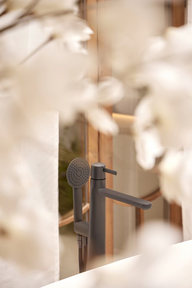 Ofuro destaca por reinterpretar la tradición oriental del baño Ofuro con un enfoque moderno. Diseñada por Jorge Herrera, esta bañera dentro de la colección Duna se distingue por su envolvente ergonomía, materiales nobles y acabado refinado, invitando a una experiencia íntima de bienestar.