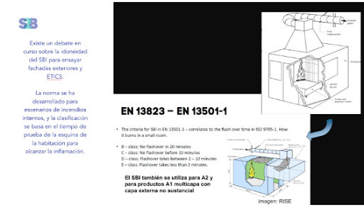 no son suficientes para garantizar la seguridad real de una fachada. El SBI (Single Burning Item) , por ejemplo, fue concebido para evaluar incendios en espacios interiores y no siempre captura la complejidad de lo que ocurre en el exterior. Factores como la