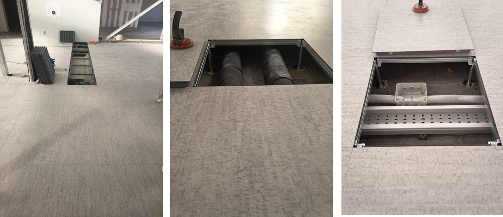 HPV LIDER Vinilo antiestático EXTRANOVO , alcanzando una altura final de 20 cm para garantizar la accesibilidad a la infraestructura técnica debajo del suelo.