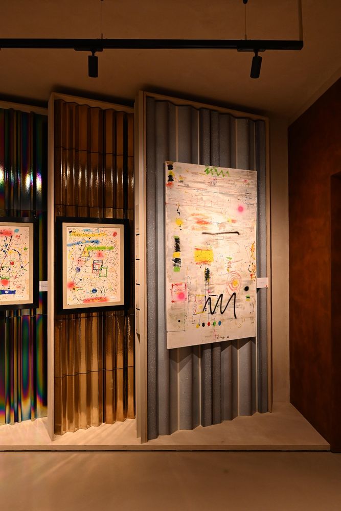 despliegan un universo de color que dialoga con la cerámica extrusionada de Gresmanc Group . Ambos lenguajes trabajan la superficie, buscan la luz y revelan cómo la materia puede influir en el ánimo.