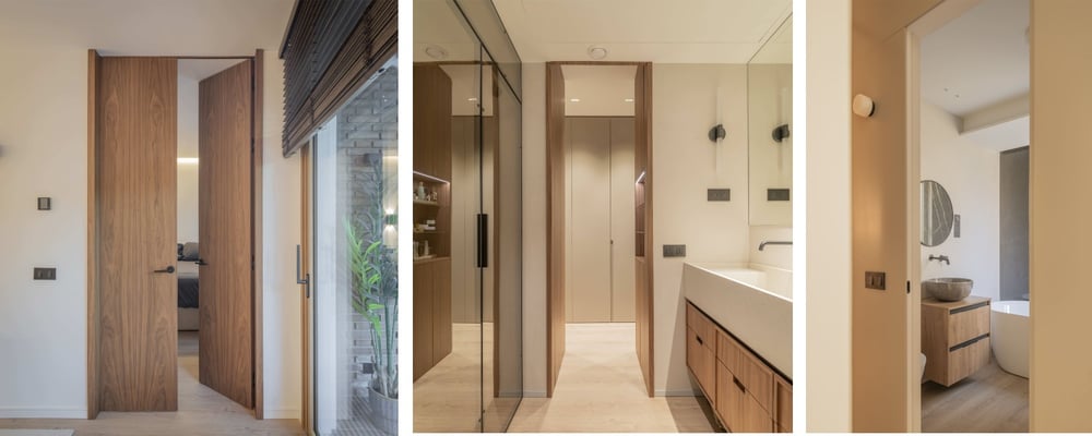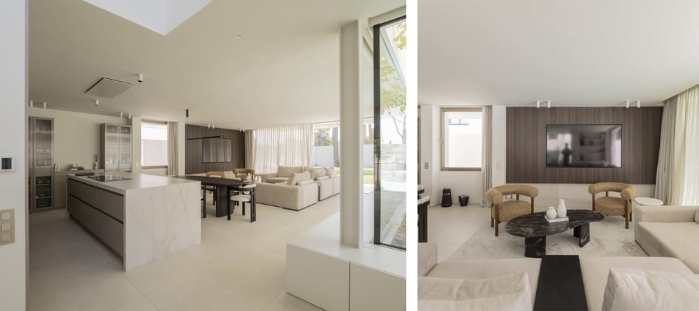 Ambas viviendas comparten una misma sensibilidad por la materialidad, la continuidad y el equilibrio entre interior y exterior. En este contexto, los mecanismos