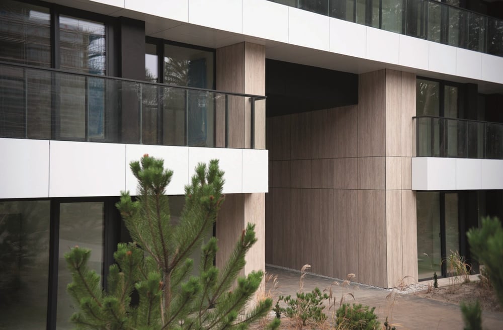 The Graphicals del portfolio de EQUITONE , la nueva gama permite trasladar al diseño de fachada, diseños gráficos inspirados en materiales como la madera, el hormigón, la piedra o el metal oxidado.