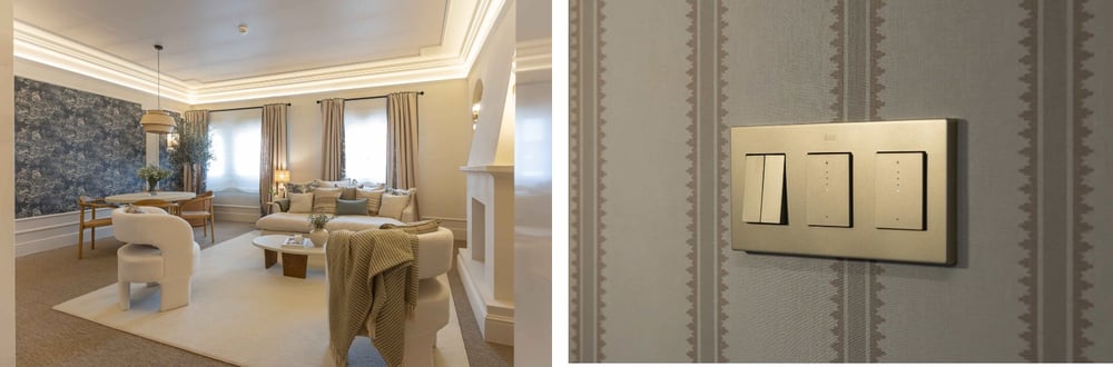 La colección se presenta en Casa Decor en acabados arena y negro, con un tacto suave que evita reflejos y reduce la aparición de manchas. Además, la serie mantiene una simetría milimétrica, con espacios mínimos e iguales entre tecla y marco, logrando una apariencia compacta y coherente en el conjunto.